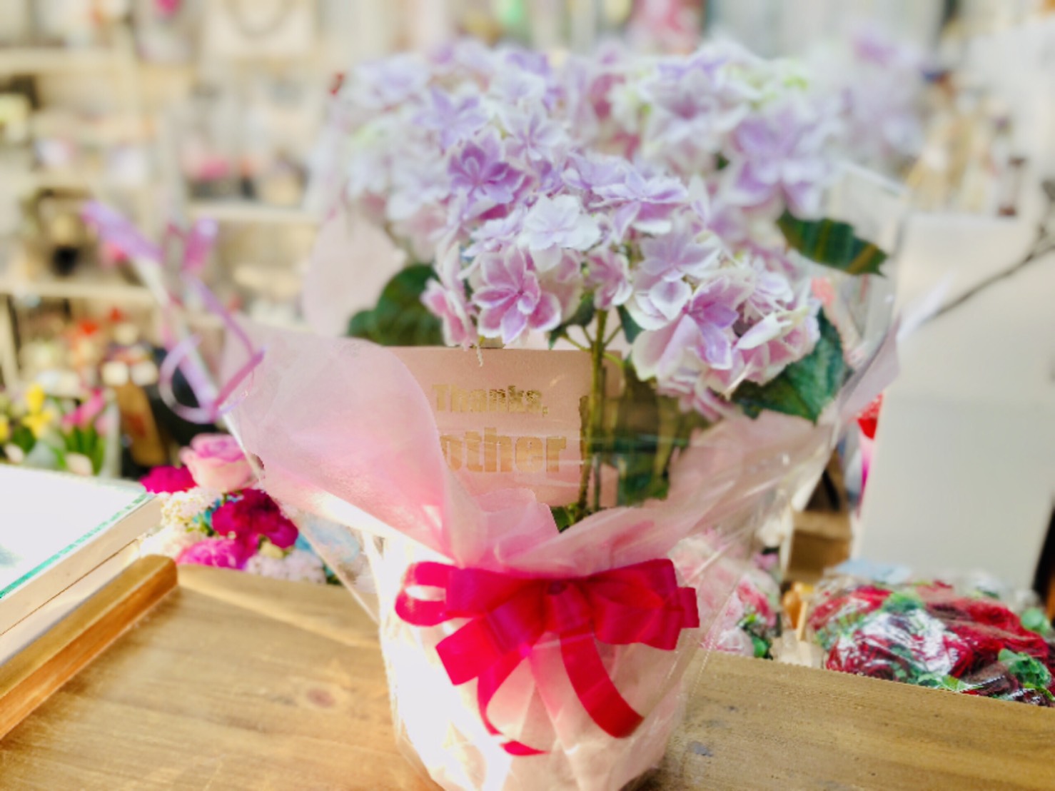 少し早い母の日に 2020.04.23 少し早めですがと言われて、母の日のプレゼントを発送してとご来店頂きました。コンペイトウと言う額紫陽花を選ばれました。市外への発送は、翌日に届きます。 フラワー教室 少しづつ変えて