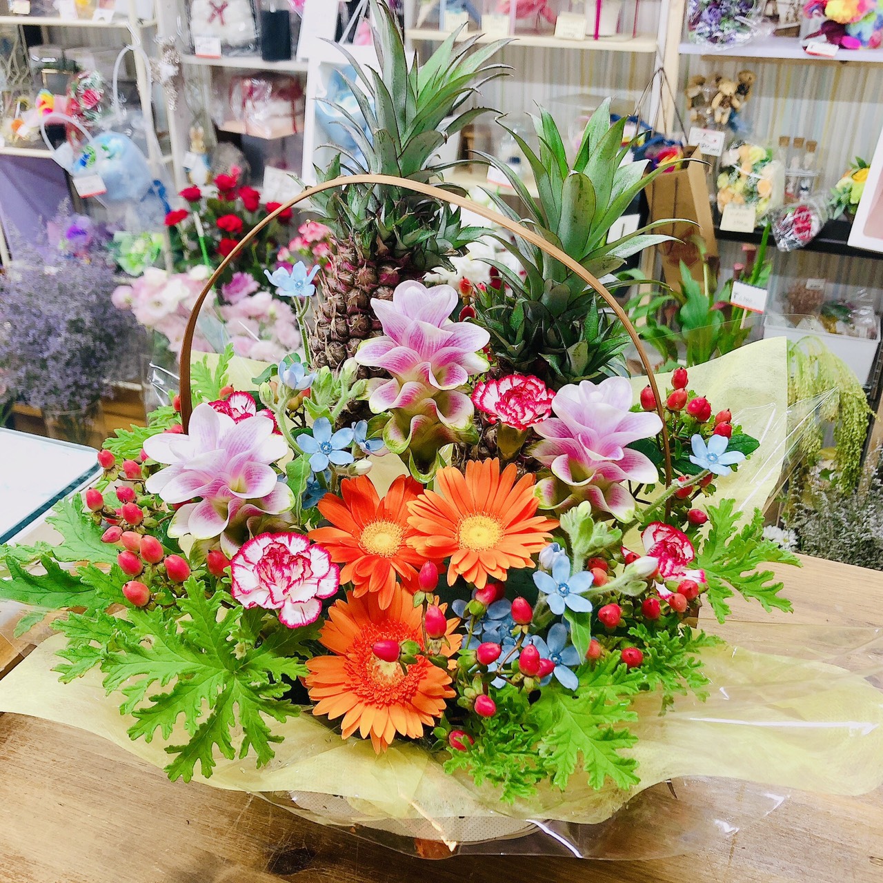 季節のお花をお届け 2020.07.15 今日は、毎週お届けしている季節のアレンジをご紹介します。毎週なので、違う感じを心掛けて作っています。歯科医院さんの受付に飾って頂いています。 お花の名前を聞かれる事もあると言う事で、名前をカードに書いてお届けしています。 ご結婚祝い お供えミニアレンジ