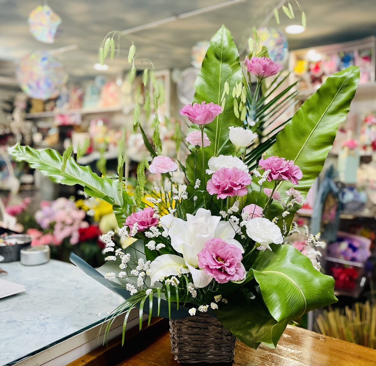 定期のお届け 2023.07.03 だんだん暑くなって来ました。1週間もつように、花材をセレクトして、活けます。途中で、何かあった場合は、連絡して頂いても大丈夫です。できる限り対応させて頂きます。夏場でも、癒しの花をご相談下さい。 手作りのハーバリウムを 古希のお祝いに