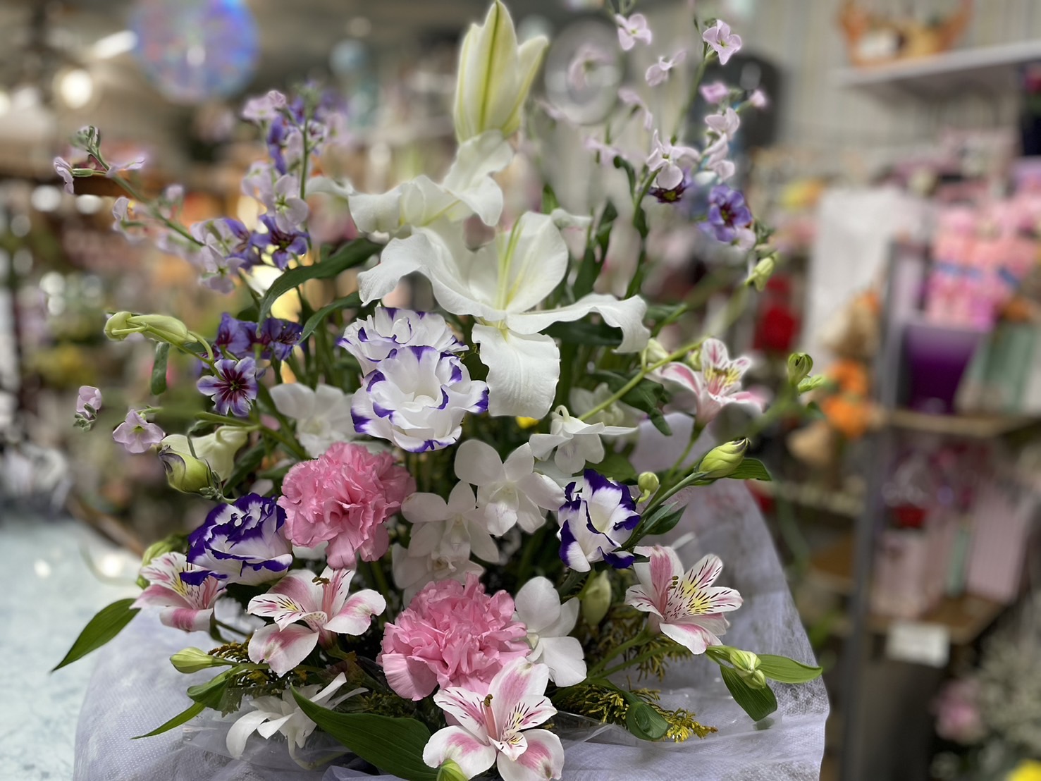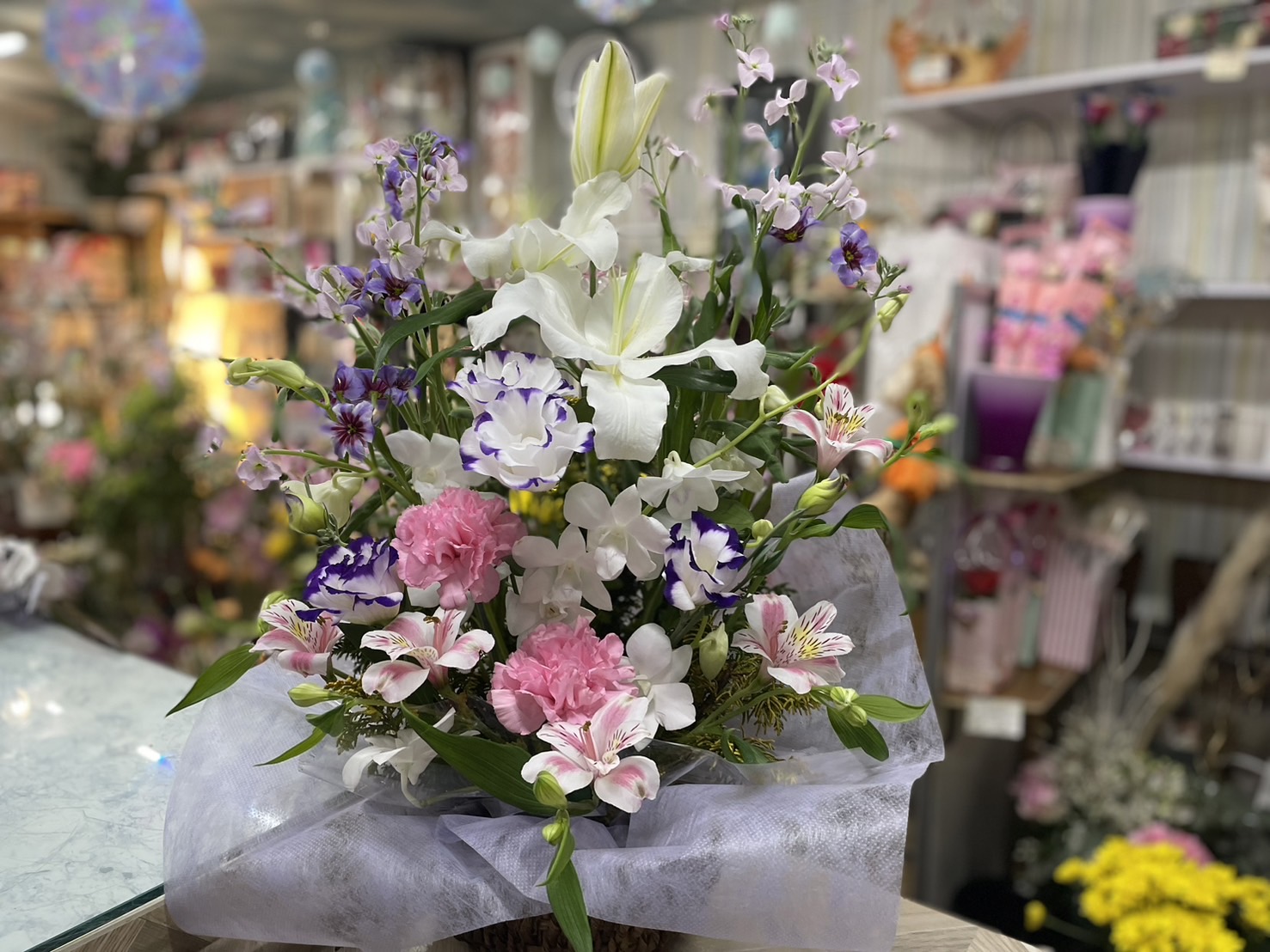 お供え用のフラワーアレンジメントをご予約頂きました。ご注文主様宅へお届けさせて頂きました。いつもご用命頂きありがとうございます。