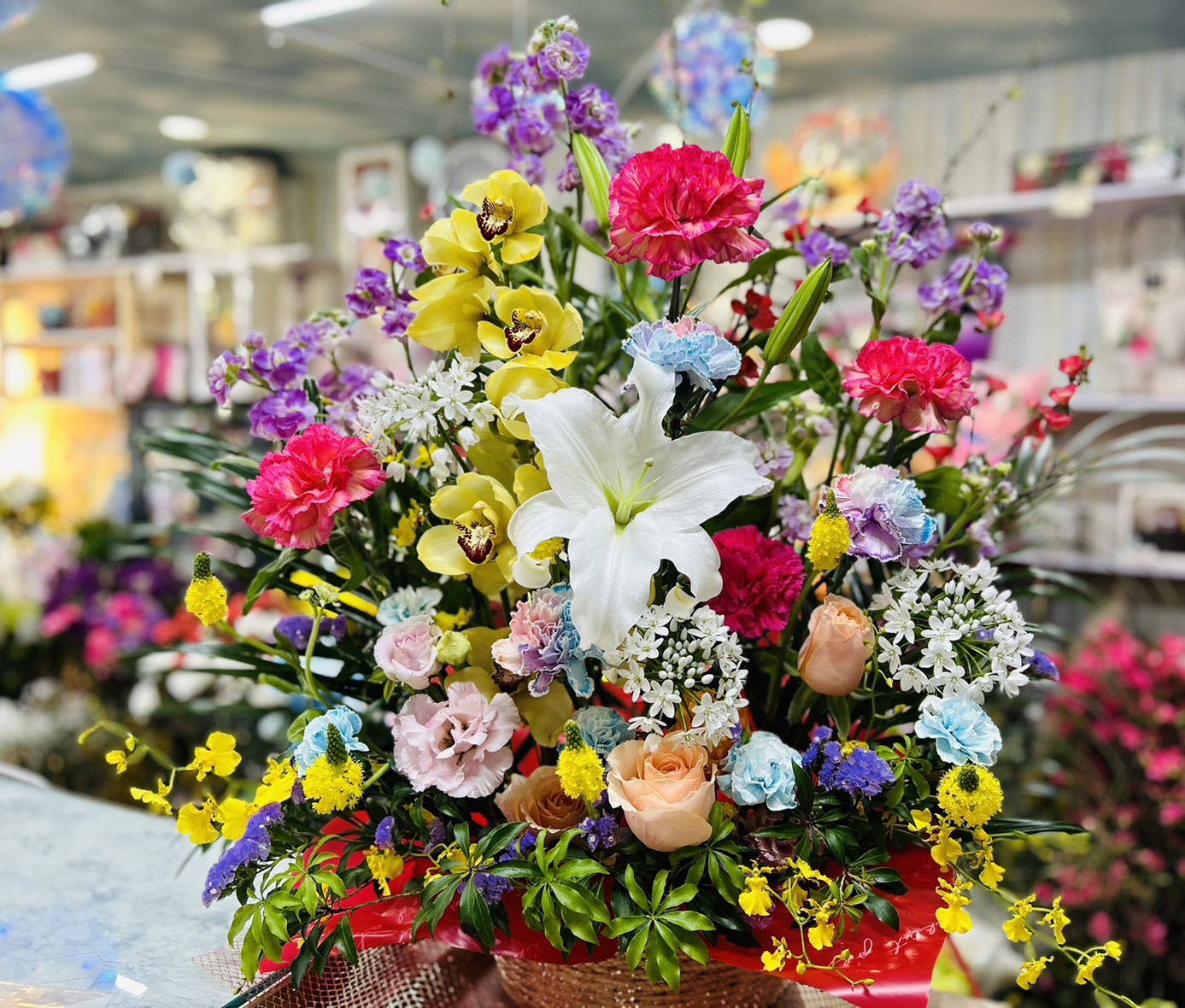 開設祝い 2024.03.15 学童を預かる施設のオープンでお祝いのフラワーアレンジメントをご注文頂き、お届けしました。子供さんもいるところなので明るい色合いで豪華に仕上げました。喜んで頂きました。 ホワイトデーに 友達と花束交換