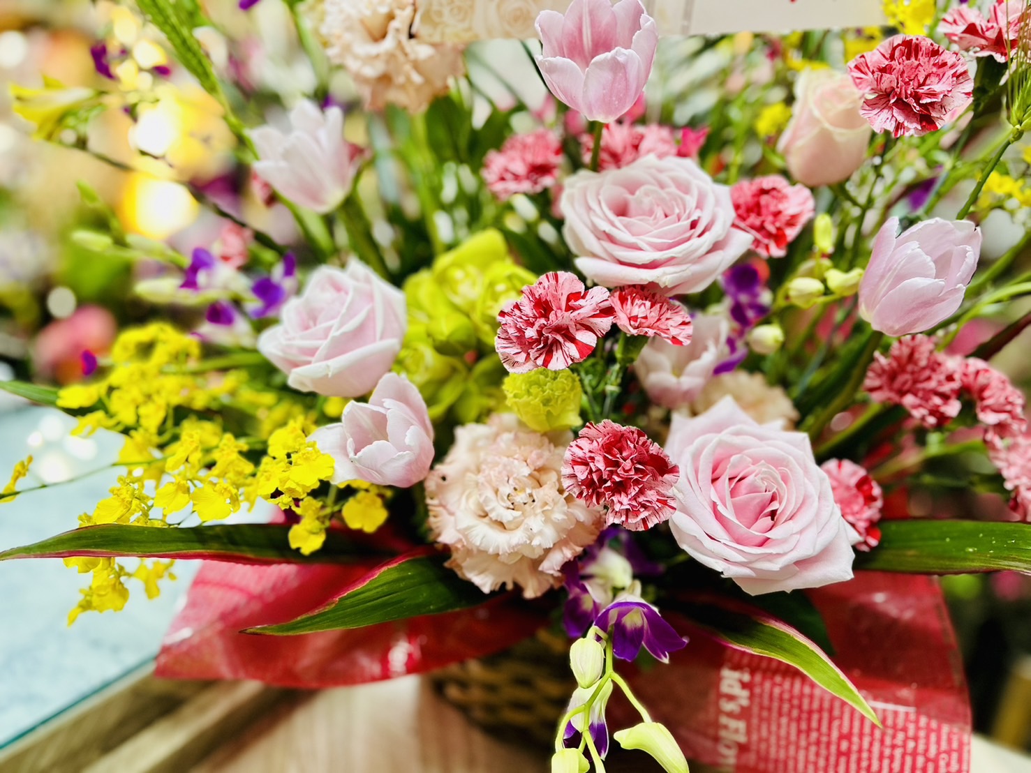 リニューアルオープンに 2024.04.05 東京の会社様より、メールで、ご依頼賜りました。今回で、2回目になります。リニューアルオープンにフラワーアレンジメントを配達致しました。華やかに作らせて頂きました。 入園式へ ギャラリーへお届け
