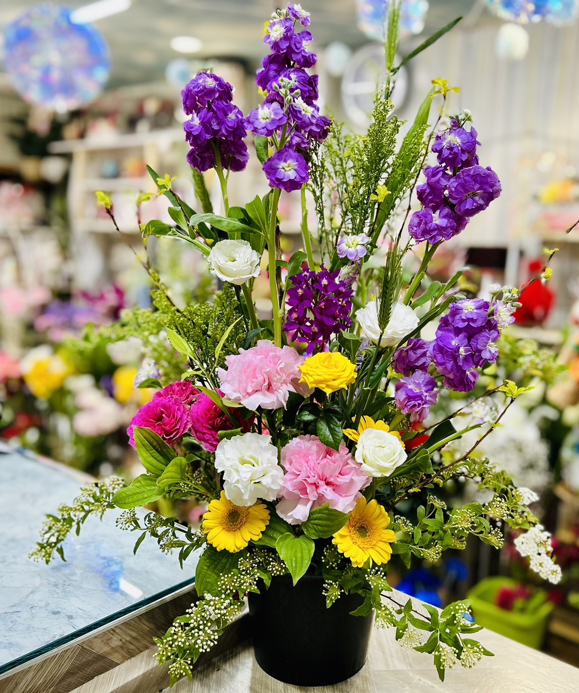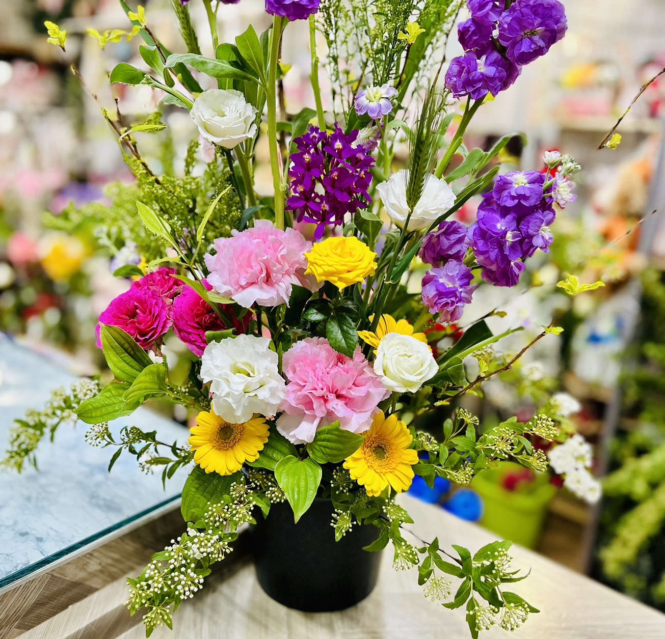 ギャラリーへお届け 2024.04.06 本日から展示会をされるギャラリーへ、お祝いのアレンジメントをお届けしました。展示会の間、お花がもつようにとご希望を頂きました。季節の花で、アレンジさせて頂きました。 リニューアルオープンに お友達へ
