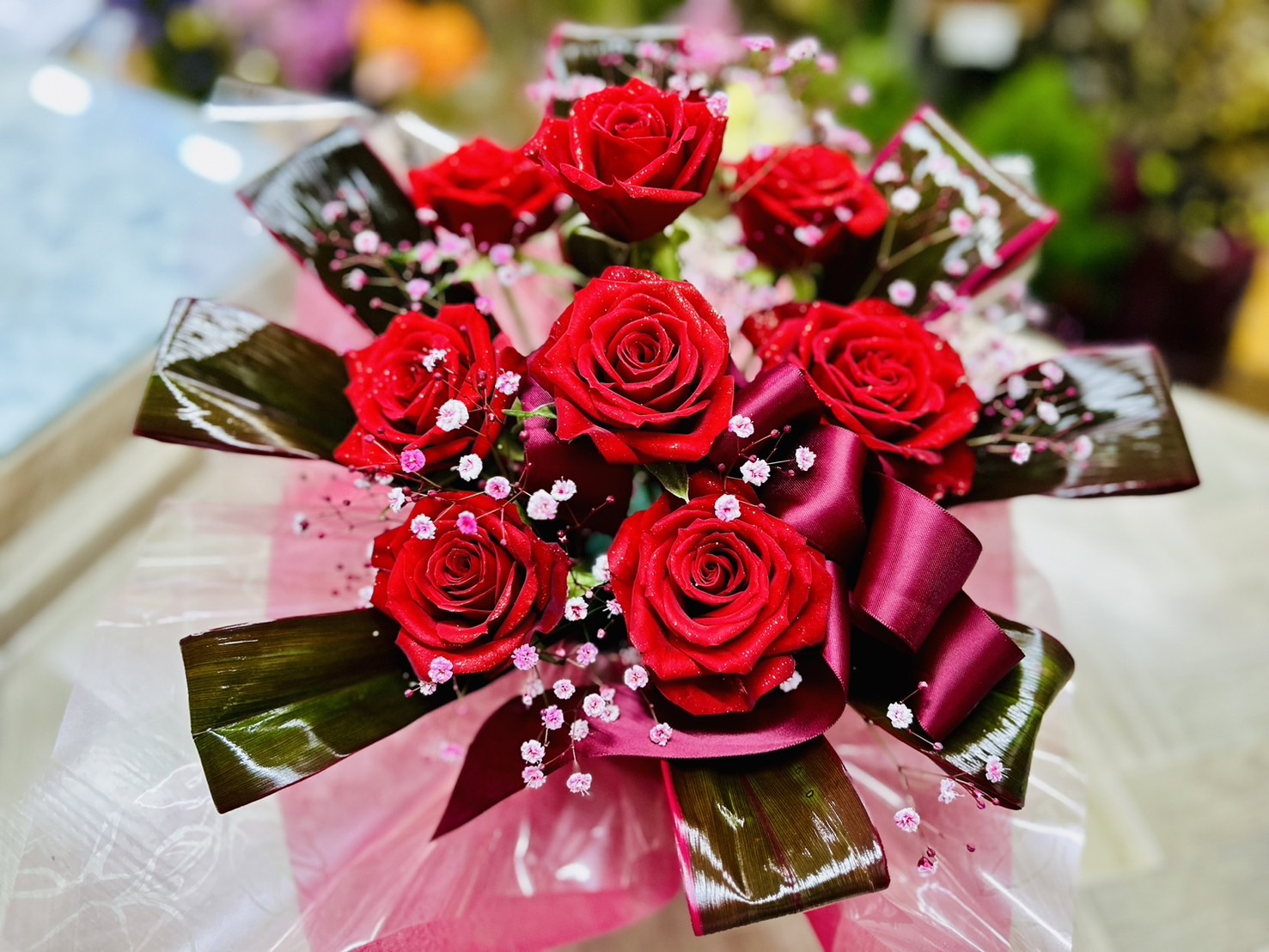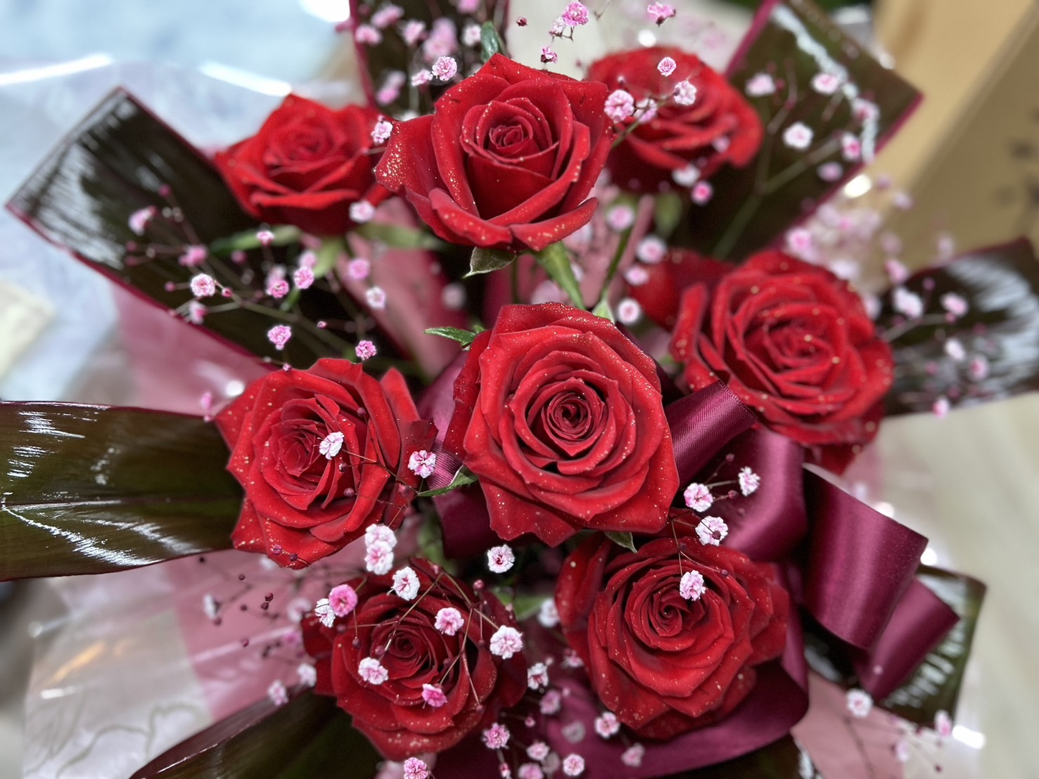 真紅のバラで 2024.05.04 お誕生日のフラワーアレンジメントを県外へ発送しました。毎年贈られている方で、シンプルな赤薔薇のアレンジがとても喜ばれるそうです。今年もお気持ちが届きますように。 七色ブーケ 喜寿のお祝い