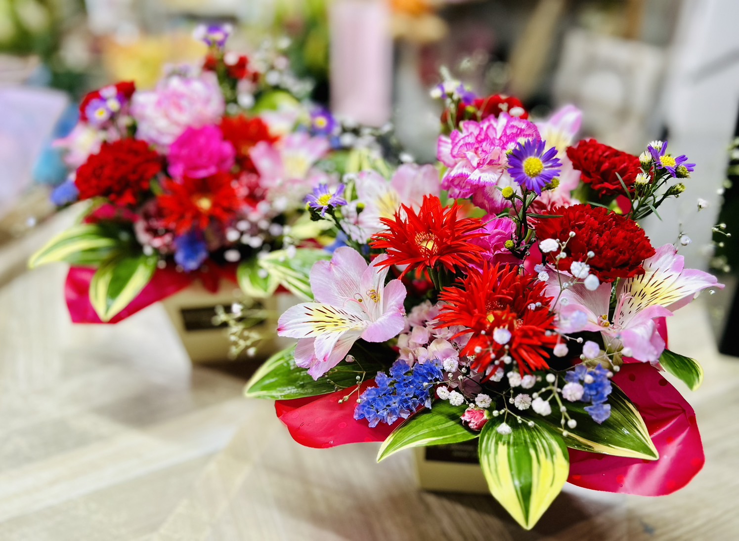 母の日 2024.05.12 母の日当日となりました。黄色のブーケや、水色のアレンジなど、作らせていただきました。ご予約なしのお客様には、お待たせしてご迷惑をお掛けしました。懲りずにまたのご来店をお待ちしています。たくさんのご来店、誠にありがとうございました。 母の日前日 遅れたけど母へ