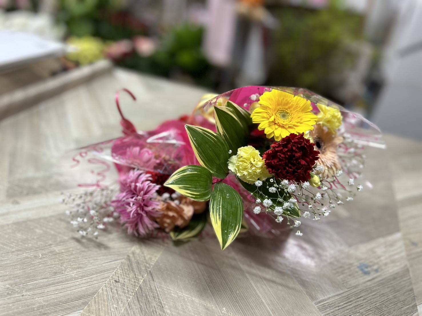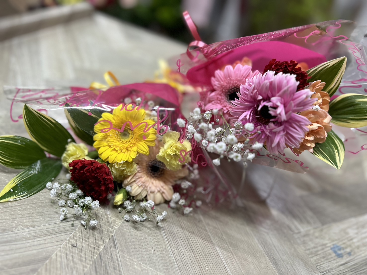 昨日は来れなかったので、本日母へ渡したいとご来店下さいました。花瓶用に、可愛いブーケを二つご用意しました。喜んでもらえます様に。