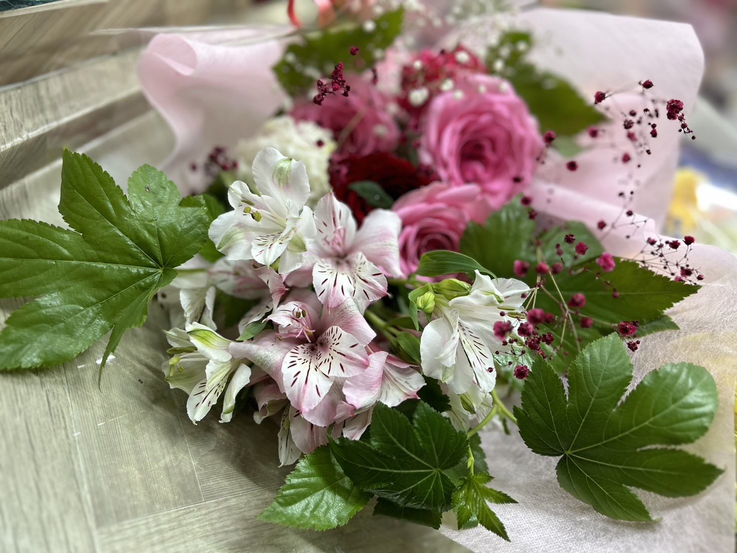 送別用の 2024.05.17 社内で、3名の移動の発表があり、ブーケをご注文頂きました。女性用と男性用で色合いを変えてお作りしました。担当者様にとても喜んでお受取頂きました。 校長先生より プランナーさんへお礼