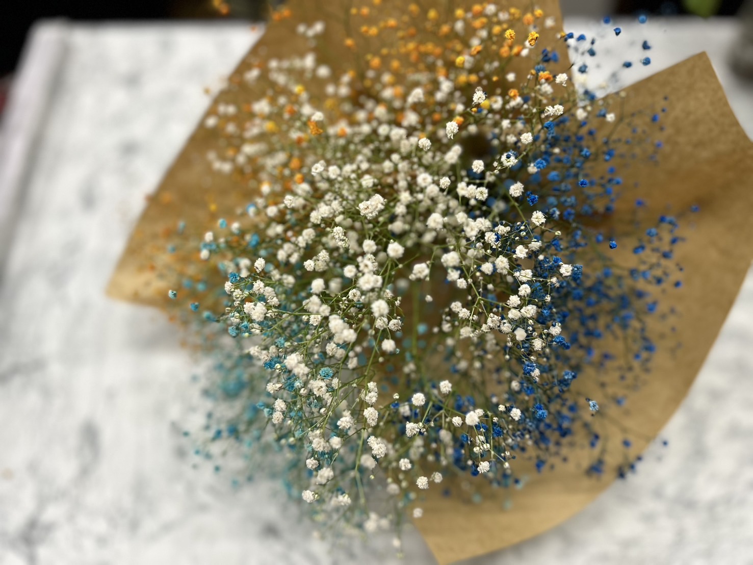 ご主人へプレゼント 2024.06.03 ご主人の誕生日に、奥様から、かすみ草のブーケのプレゼントです。白いかすみ草に、3色染めたかすみ草を入れました。花瓶で飾った後は、ドライフラワーにして楽しんで頂けます。 ブーケのご予約 リニューアルオープンに