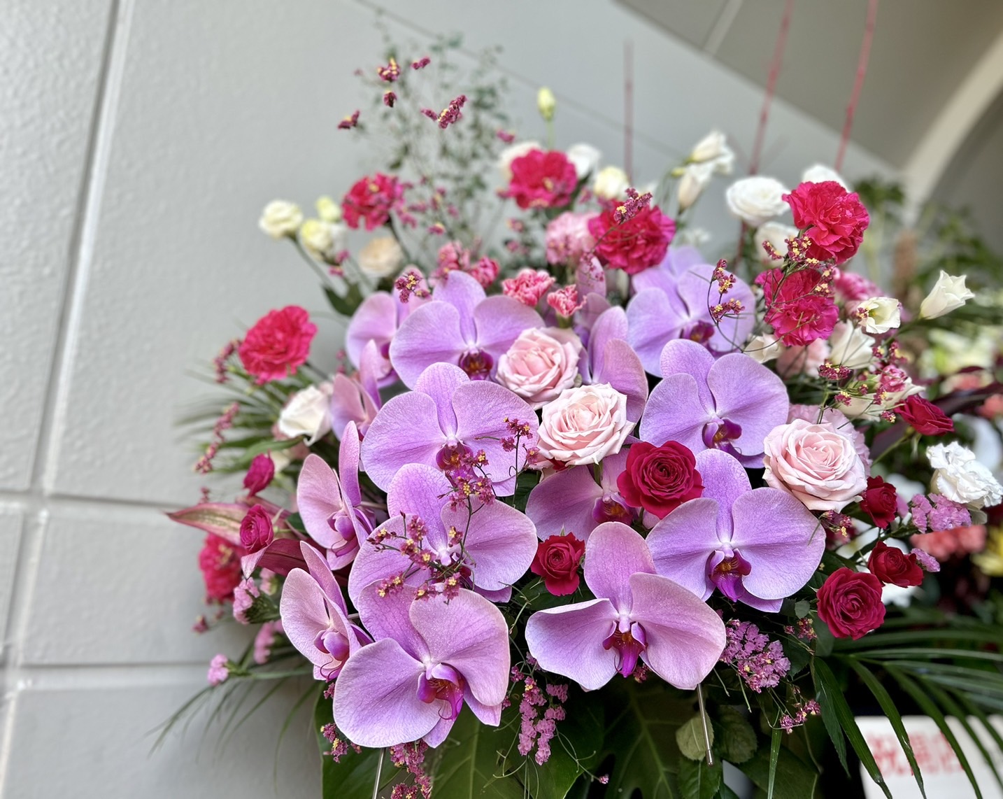サウナの開店祝い 2024.12.02 新しいサウナの開店で、スタンドのご注文を頂きました。胡蝶蘭を入れてほしいとのご希望でした。華やかで豪華な2段のスタンドが仕上がりました。 母の誕生日 ご予約のアレンジをお届け
