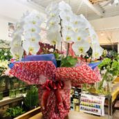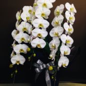 飲食店様の開店祝いに贈りました。定番の白い胡蝶蘭の36輪は、豪華でもちも良く、喜ばれる鉢物です。