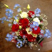 2.ブルーの赤のコントラストが綺麗なアレンジ。男性へのプレゼントにもオススメ