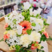 バスケットや陶器などの器に切花を生けたものですので、『かご盛り』と言ったり『フラワーアレンジ』や『アレンジ』などと省略する場合もあります。