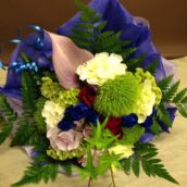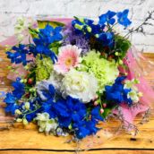 5.ブルーの花を使ったブーケ。お店の周年記念でご依頼ありました。
